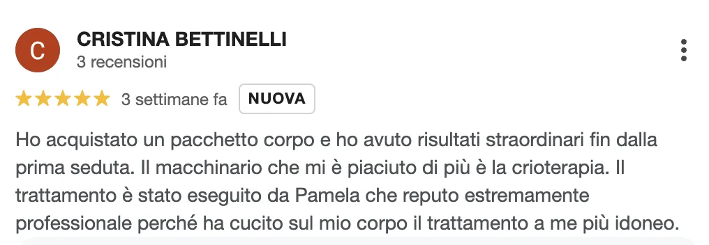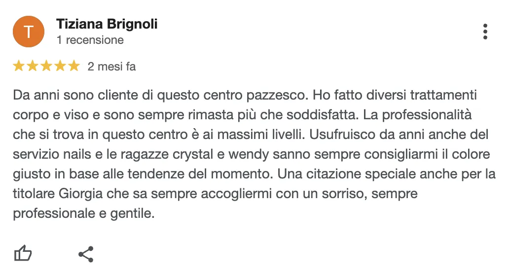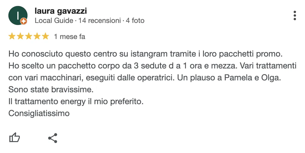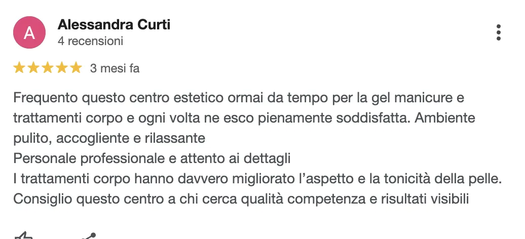 “Trattamenti vari e professionali, mi sono sentita seguita e leggera fin dalla prima seduta.”